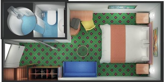 Όλες οι καμπίνες διαθέτουν τηλεόραση, ψυγείο, χρηματοκιβώτιο, μπάνιο με ντους και πιστολάκι μαλλιών. Όλες οι δίκλινες καμπίνες μπορούν να τροποποιηθούν και να έχουν ή δύο μονά κρεβάτια ή ένα διπλό.