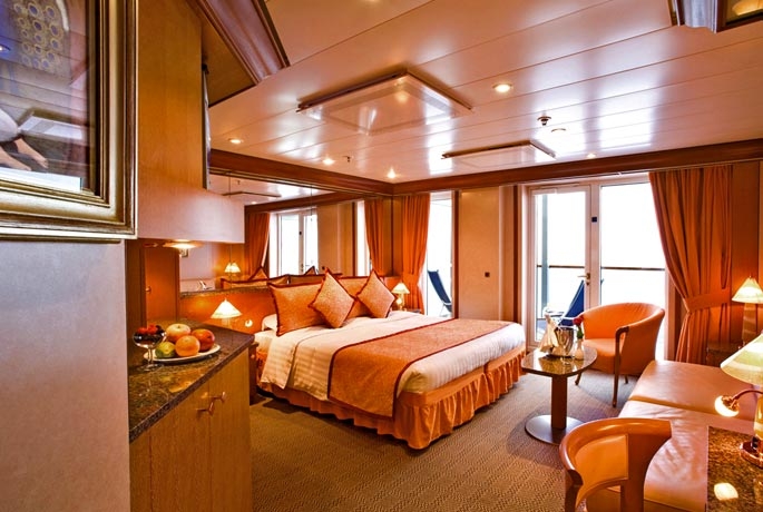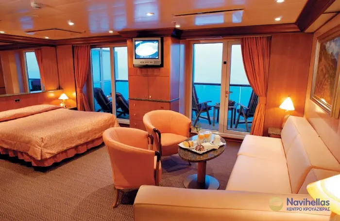 Φιλόξενες, καλαίσθητες και ευρύχωρες , παρέχουν δε υπηρεσίες υψηλής ποιότητας. Εκτός από όλα τα πλεονεκτήματα των καμπινών Premium, σας παρέχονται αποκλειστικές υπηρεσίες που κάνουν τη διαμονή σας πραγματικά αξέχαστη. Προτεραιότητα επιβίβασης, ιδιωτικό μπάτλερ πάντα σε υπηρεσία, προτεραιότητα για την επιλογή της ώρας στο εστιατόριο, αποκλειστικό τζακούζι και φρέσκα φρούτα κάθε μέρα. Εμβαδόν σουίτας από 31 έως 63 τ.μ.