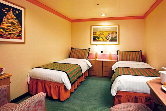 Oι φωτογραφίες, η κάτοψη και η διακόσμηση των καμπινών όπως αυτές εμφανίζονται στην ιστοσελίδα μας είναι ενδεικτικές. Η διαρρύθμιση ή/και η διακόσμηση της καμπίνας της επιλογής σας είναι πιθανόν να διαφέρει αναλόγως της κατηγορίας και της θέσης της, επί του κρουαζιερόπλοιου.