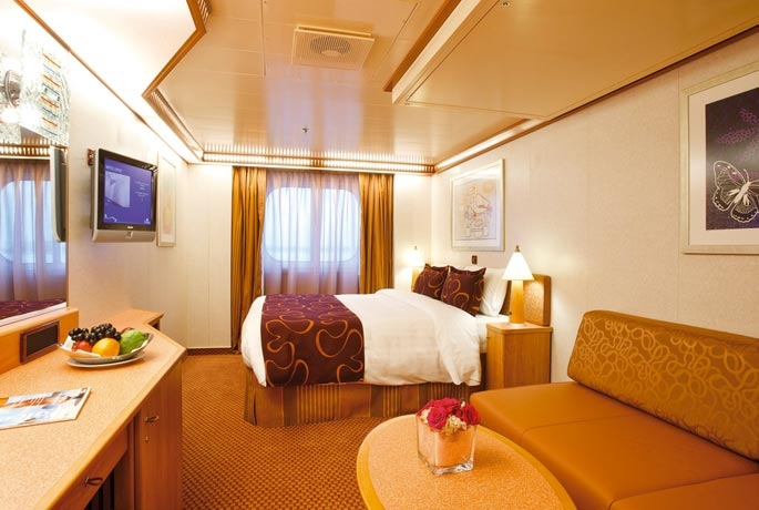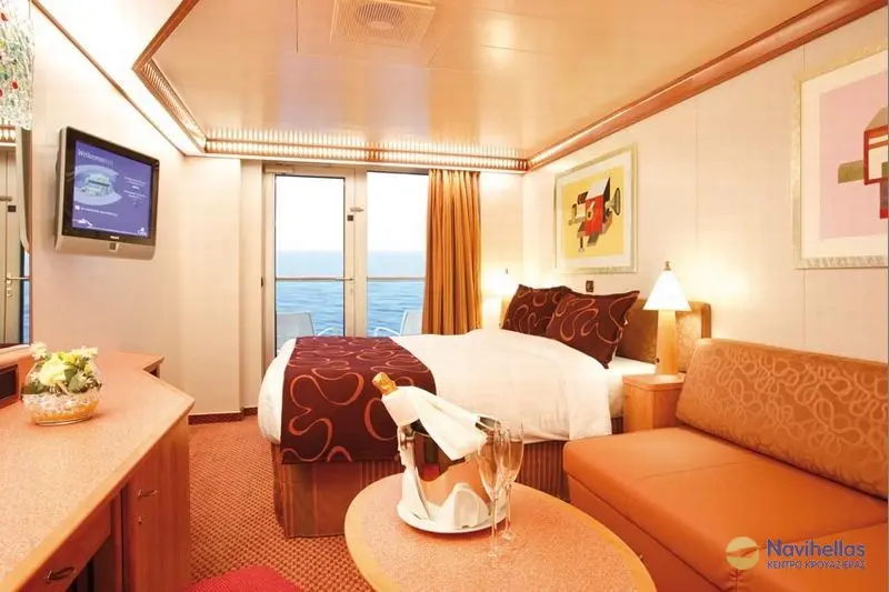 Oι φωτογραφίες, η κάτοψη και η διακόσμηση των καμπινών όπως αυτές εμφανίζονται στην ιστοσελίδα μας είναι ενδεικτικές. Η διαρρύθμιση ή/και η διακόσμηση της καμπίνας της επιλογής σας είναι πιθανόν να διαφέρει αναλόγως της κατηγορίας και της θέσης της, επί του κρουαζιερόπλοιου.