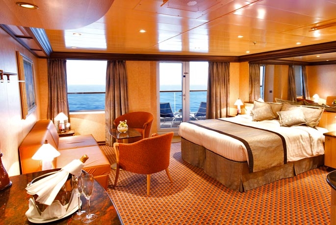 Φιλόξενες, καλαίσθητες και ευρύχωρες , παρέχουν δε υπηρεσίες υψηλής ποιότητας. Εκτός από όλα τα πλεονεκτήματα των καμπινών Premium, σας παρέχονται αποκλειστικές υπηρεσίες που κάνουν τη διαμονή σας πραγματικά αξέχαστη. Προτεραιότητα επιβίβασης, ιδιωτικό μπάτλερ πάντα σε υπηρεσία, προτεραιότητα για την επιλογή της ώρας στο εστιατόριο, αποκλειστικό τζακούζι και φρέσκα φρούτα κάθε μέρα. Εμβαδόν σουίτας από 31 έως 63 τ.μ.