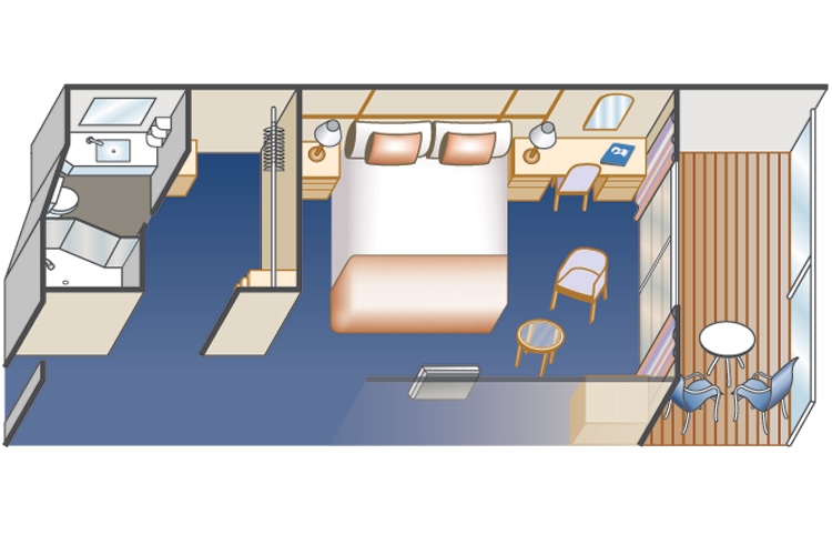 Οι καμπίνες αυτές διαθέτουν ιδιωτικό μπαλκόνι, ξεχωριστό καθιστικό με καναπέ κρεβάτι, δύο μονά κρεβάτια που μετατρέπονται σε ένα διπλό, μπάνιο με ντους, δορυφορική τηλεόραση, ψυγείο, πιστολάκι μαλλιών, χρηματοκιβώτιο, ντουλάπα, γραφείο,τηλέφωνο, καθημερινή υπηρεσία καθαρισμού, βραδινό service, amenities. Το εμβαδόν της καμπίνας κυμαίνεται στα 23 τ.μ.