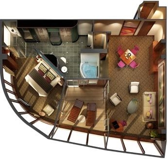Οι καμπίνες αυτές μπορούν να φιλοξενήσουν έως και τρία άτομα. Περιλαμβάνουν δύο χαμηλά κρεββάτια τα οποία μετατρέπονται σε ένα μεγάλο διπλό, με χώρο καθιστικού με συμπληρωματικό κρεββάτι για ένα ακόμα επιβάτη. Δωρεάν είσοδο στην εμπειρία Mandara Spa, συμπεριλαμβανομένης της δωρεάν πρόσβαση στο Thermal Spa. Οι επισκέπτες κάτω των 18 ετών δεν επιτρέπεται στις θερμικές σουίτες.