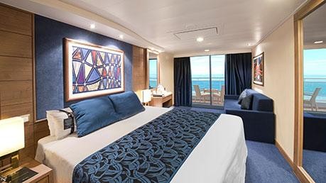 Διπλό κρεβάτι Κλιματισμός. Ευρύχωρη ντουλάπα. Μπάνιο με μπανιέρα. Χώρος καθιστικού. Τηλεόραση. Τηλέφωνο. Μίνι μπαρ. Χρηματοκιβώτιο. Επιφάνεια καμπίνας 26 τμ με ιδιωτικό μπαλκόνι.