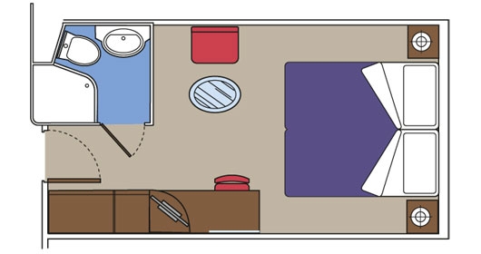 Tα κρεβάτια μπορούν να είναι δύο μονά ή ένα διπλό(κατόπιν ζήτησης). Κλιματισμός. Ευρύχωρη ντουλάπα. Πλήρως εξοπλισμένο μπάνιο με ντούς ή μπανιέρα. Διαδραστική τηλεόραση. Τηλέφωνο. Mini bar & χρηματοκιβώτιο. Επιφάνεια καμπίνας από 18 - 21 τμ.με παράθυρο