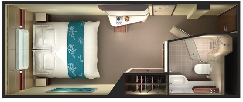 Κατ. Ι1, Ι2, ΙΑ – ΙΕ Οι εσωτερικές καμπίνες είναι είτε 4κλινες είτε δίκλινες. Διαθέτουν δύο χαμηλά κρεβάτια και έως δύο πτυσόμενες κουκέτες. Είναι μία καλή επιλογή σε προσιτή τιμή. Οι τετράκλινες καμπίνες βρίσκονται κοντά στην περιοχή των εγκαταστάσεων για παιδιά ενώ οι δίκλινες καμπίν βρίσκονται κυρίως στη μέση του πλοίου με εύκολη πρόσβαση σε όλους τους κοινόχρηστους χώρους.Εμβαδόν καμπίνας 14 τ.μ.Για 2 έως 4 άτομα.