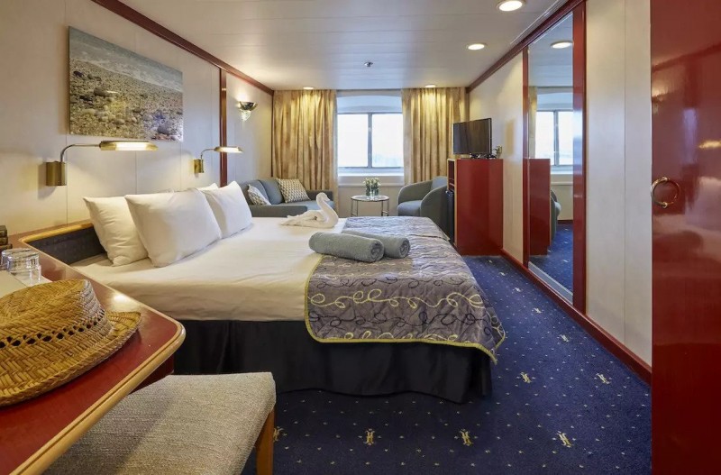 Οι σουίτες στο κατάστρωμα 6 (25 & 34 τ.μ.) μπορούν να φιλοξενήσουν μέχρι 3 άτομα, με 2 χαμηλά κρεβάτια και 1 καναπέ-κρεβάτι, μπάνιο με ντουζιέρα, κλιματισμό, τηλέφωνο, στεγνωτήρα μαλλιών, θυρίδα ασφαλείας, τηλεόραση, ψυγείο-μίνι μπαρ και 2 παράθυρα.