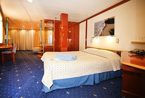Οι εξωτερικές καμπίνες στα καταστρώματα 6 και 7 (15-16 τ.μ.) μπορούν να φιλοξενήσουν μέχρι 4 άτομα, με 2 χαμηλά κρεβάτια, 3ο/4ο κρεβάτι κουκέτα, καναπέ-κρεβάτι, μπάνιο με ντουζιέρα, κλιματισμό, τηλέφωνο, στεγνωτήρα μαλλιών, θυρίδα ασφαλείας, τηλεόραση και παράθυρο.