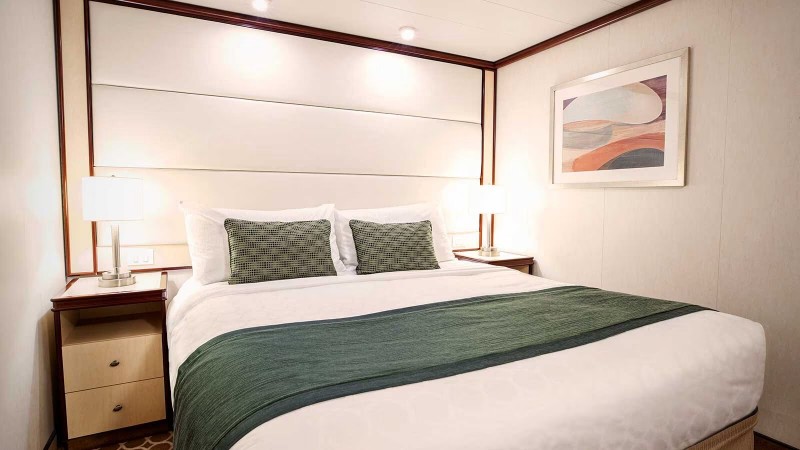 Δύο μονά κρεβάτια που προσαρμόζονται σε ένα διπλό. Διαθέτει μπαλκόνι, ψυγείο, τηλεόραση, μεγάλη ντουλάπα, γραφείο & μπάνιο με ντους. Το συνολικό εμβαδό της καμπίνας κυμαίνεται έως 28 τ.μ. και του μπαλκονιού έως 4 τ.μ.