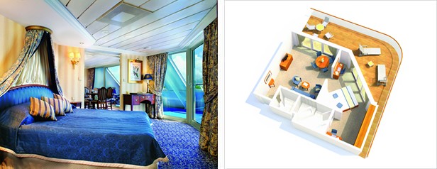 Καμπίνες: Διέθετε διάφορους τύπους καμπινών, από εσωτερικές και εξωτερικές με θέα θάλασσα, μέχρι καμπίνες με μπαλκόνι και σουίτες.