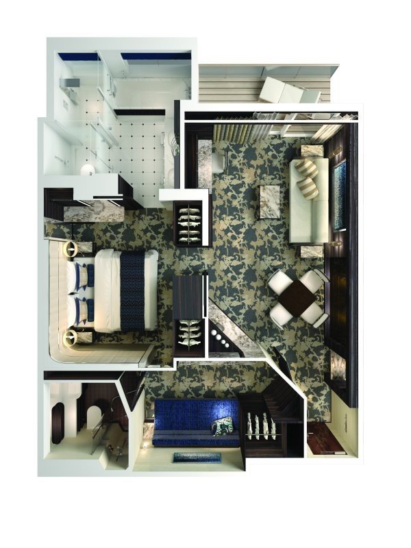 Τα studios απευθύνονται συνήθως σε επιβάτες που ταξιδεύουν μόνοι τους και έχουν θέα στους εσωτερικούς διαδρόμους του κρουαζιερόπλοιου. Αποκλειστική πρόσβαση στο ιδιωτικό καθιστικό των studios τo οποίο διαθέτει μπαρ, δύο μεγάλες οθόνες τηλεόρασης και άνετα καθίσματα για παρέα και γνωριμίες. Eμβαδόν καμπίνας 9 τ.μ.
