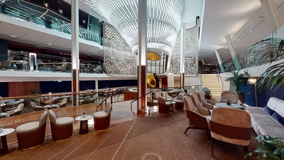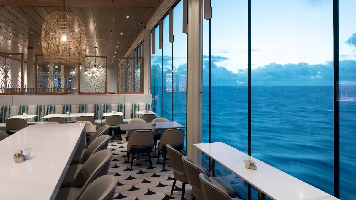 The Magic Carpet: Μια πλατφόρμα που αιωρείται στην πλευρά του πλοίου, προσφέροντας διαφορετικές λειτουργίες σε διάφορα καταστρώματα – από εστιατόριο ειδικής βραδινής εμπειρίας έως μπαρ με θέα στη θάλασσα και σημείο επιβίβασης για Tender.