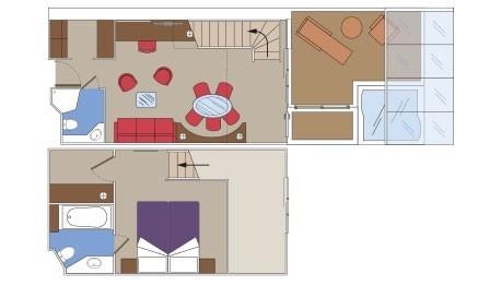 Oι φωτογραφίες, η κάτοψη και η διακόσμηση των καμπινών όπως αυτές εμφανίζονται στην ιστοσελίδα μας είναι ενδεικτικές. Η διαρρύθμιση ή/και η διακόσμηση της καμπίνας της επιλογής σας είναι πιθανόν να διαφέρει αναλόγως της κατηγορίας και της θέσης της, επί του κρουαζιερόπλοιου.