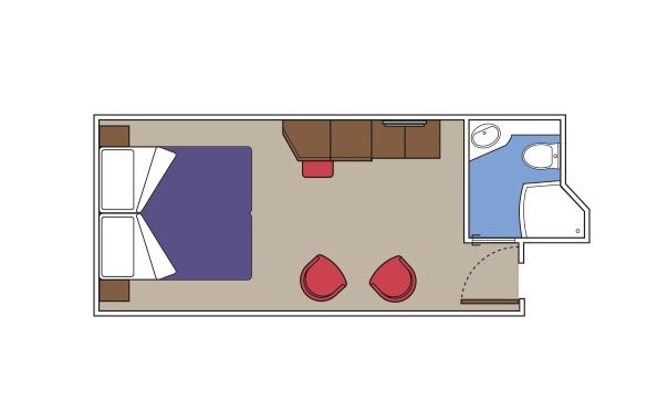 Oι φωτογραφίες, η κάτοψη και η διακόσμηση των καμπινών όπως αυτές εμφανίζονται στην ιστοσελίδα μας είναι ενδεικτικές. Η διαρρύθμιση ή/και η διακόσμηση της καμπίνας της επιλογής σας είναι πιθανόν να διαφέρει αναλόγως της κατηγορίας και της θέσης της, επί του κρουαζιερόπλοιου.