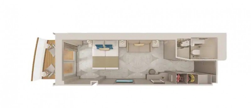 Oι φωτογραφίες, η κάτοψη και η διακόσμηση των καμπινών όπως αυτές εμφανίζονται στην ιστοσελίδα μας είναι ενδεικτικές. Η διαρρύθμιση ή/και η διακόσμηση της καμπίνας της επιλογής σας είναι πιθανόν να διαφέρει αναλόγως της κατηγορίας και της θέσης της, επί του κρουαζιερόπλοιου.
