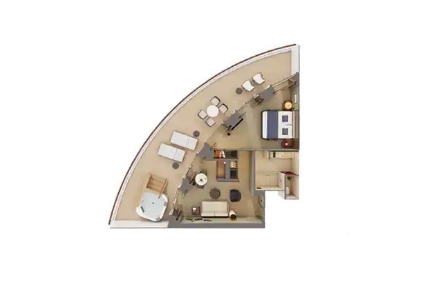 Oι φωτογραφίες, η κάτοψη και η διακόσμηση των καμπινών όπως αυτές εμφανίζονται στην ιστοσελίδα μας είναι ενδεικτικές. Η διαρρύθμιση ή/και η διακόσμηση της καμπίνας της επιλογής σας είναι πιθανόν να διαφέρει αναλόγως της κατηγορίας και της θέσης της, επί του κρουαζιερόπλοιου.