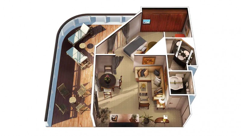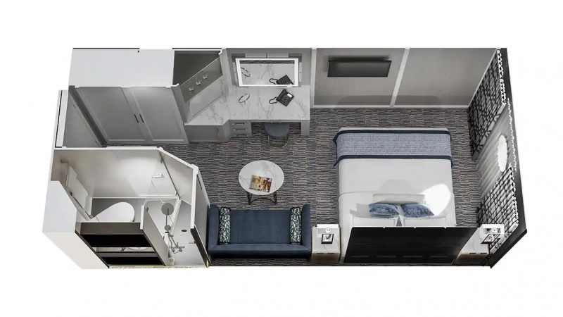 Για την εξυπηρέτηση των επιβατών και μια μοναδική εμπειρία διαμονής, διατίθενται 333 σουίτες και κομψές καμπίνες, των οποίων σχεδόν το 70% διαθέτουν ιδιωτικές βεράντες. Με περισσότερα από 400 άτομα πλήρωμα που εξυπηρετούν έως και 656 επισκέπτες.