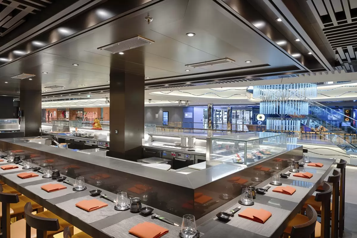 Στο πλοίο οι επιβάτες μπορούν να απολαύσουν πολλές γαστρονομικές επιλογές από όλο τον κόσμο, όπως: