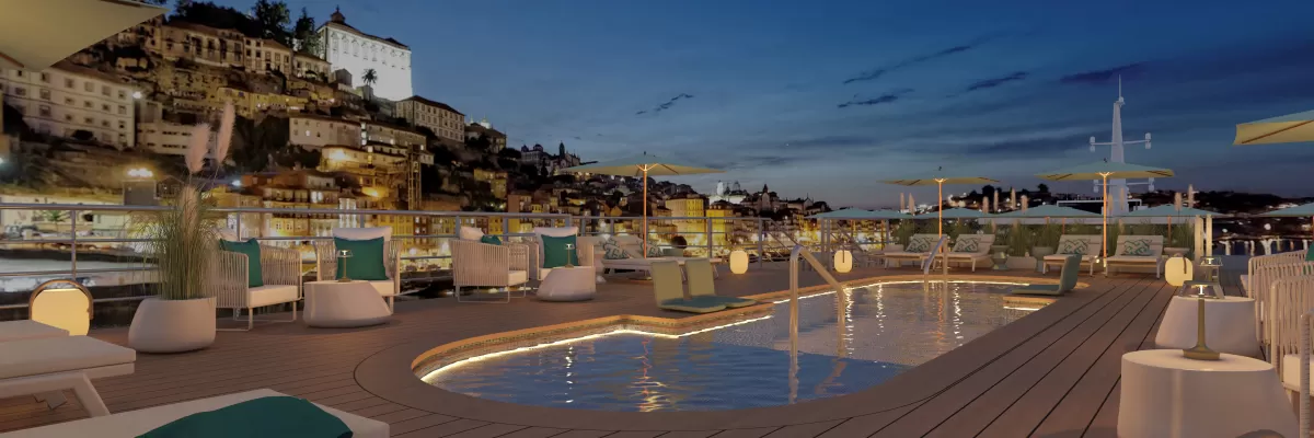 χώρου και οικειότητας, είτε χαλαρώνετε στην ευρύχωρη καμπίνα σας, απολαμβάνετε εκλεπτυσμένη κουζίνα ή χαλαρώνετε στο Sun Deck δίπλα στην πισίνα καθώς ξεδιπλώνεται το τοπίο. Οι επιβάτες μπορούν να αποβιβαστούν στην καρδιά των γοητευτικών πόλεων κατά μήκος του ποταμού και να εξερευνήσουν