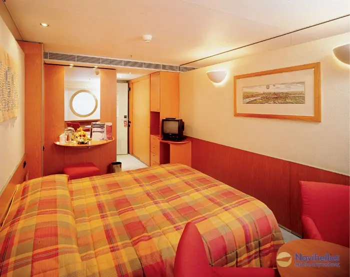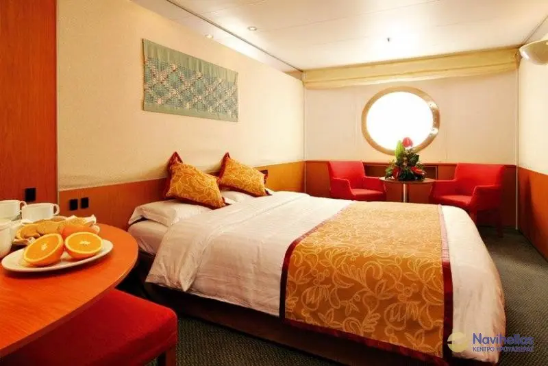 Oι φωτογραφίες, η κάτοψη και η διακόσμηση των καμπινών όπως αυτές εμφανίζονται στην ιστοσελίδα μας είναι ενδεικτικές. Η διαρρύθμιση ή/και η διακόσμηση της καμπίνας της επιλογής σας είναι πιθανόν να διαφέρει αναλόγως της κατηγορίας και της θέσης της, επί του κρουαζιερόπλοιου.