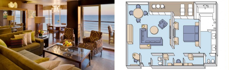 Ευρύχωρο καθιστικό με πολυέλαιο Swarovski . Μεγάλη ιδιωτική βεράντα με έπιπλα από ξύλο τικ , Πολυτελή τραπεζαρία με παράθυρα από το δάπεδο μέχρι την οροφή , Μεγάλο ξεχωριστό υπνοδωμάτιο , κύριο μπάνιο με θέα στον ωκεανό με Jacuzzi , ξεχωριστό ντους, ευρύχωρο δωμάτιο- ντουλάπα. Μπαρ, Γραφείο, βιβλιοθήκη και ντουλάπι, μπάνιο επισκεπτών. Επιφάνεια σουίτας 92 τ.μ. συμπεριλαμβανομένης της βεράντας.
