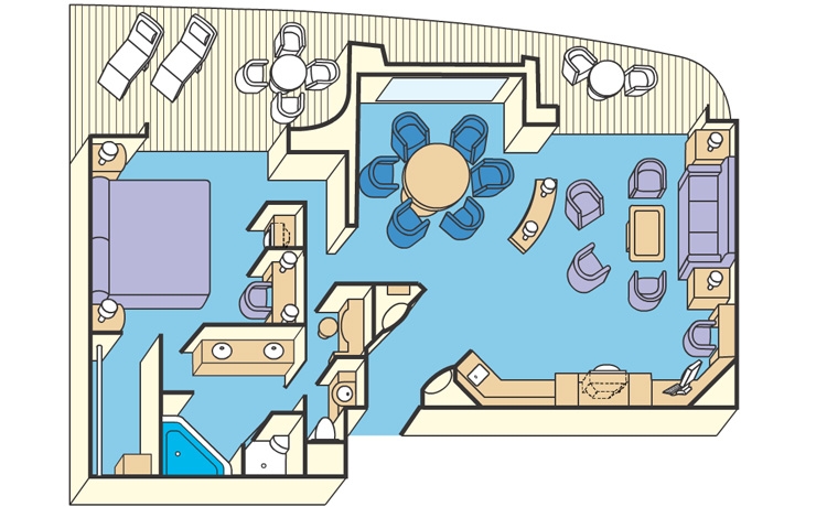 Χωρητικότητα: 108.977 τόνοιΌλες οι καμπίνες διαθέτουν δύο κρεβάτια τα οποία μετατρέπονται σε ένα διπλό, δορυφορική τηλεόραση, ψυγείο, στεγνωτήρα μαλλιών, χρηματοκιβώτιο, ντουλάπα τηλέφωνο και γραφείο. Αναλόγως της κατηγορίας καμπίνας οι παροχές και οι υπηρεσίες ποικίλουν. Για παράδειγμα οι σουίτες διαθέτουν μια σειρά από ανέσεις και υπηρεσίες όπως ξεχωριστό καθιστικό, καναπέ-κρεβάτι, αναβαθμισμένη έπιπλα βεράντας, δωρεάν μίνι μπαρ, cd / dvd player, δυνατότητα επιλογής μαξιλαριών, πολυτελείς πετσέτες και μπουρνούζια, φρέσκα λουλούδια, αναβαθμισμένες παροχές μπάνιου, ευρύχωρο δωμάτιο ντουλάπα κλπ. Έχετε προτεραιότητα στην διαδικασία επιβίβασης και αποβίβασης, στις κρατήσεις προαιρετικών εκδρομών και στις υπηρεσίες της ρεσεψιόν, δωρεάν υπηρεσία πλυντηρίου, η χρήση spa, αποκλειστική τραπεζαρία για το πρωϊνό και γεύμα, τσάι στην σουίτα σας κλπ. Άπειρες υπηρεσίες για γαστρονομικές ευχαριστήσεις καθώς και ειδικές παροχές που κάνουν τις ημέρες και νύχτες σας εν πλώ αξέχαστες.